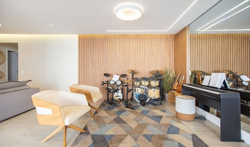 Home Office Profissional: O escritório amplo e totalmente equipado é um diferencial importante para quem trabalha em regime híbrido ou remoto, aproveitando o espaço que seria um terceiro dormitório.